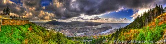View large The Golden hour in Bergen, Norway, seen from the Fløyen mountain. 320 metres above sea level.